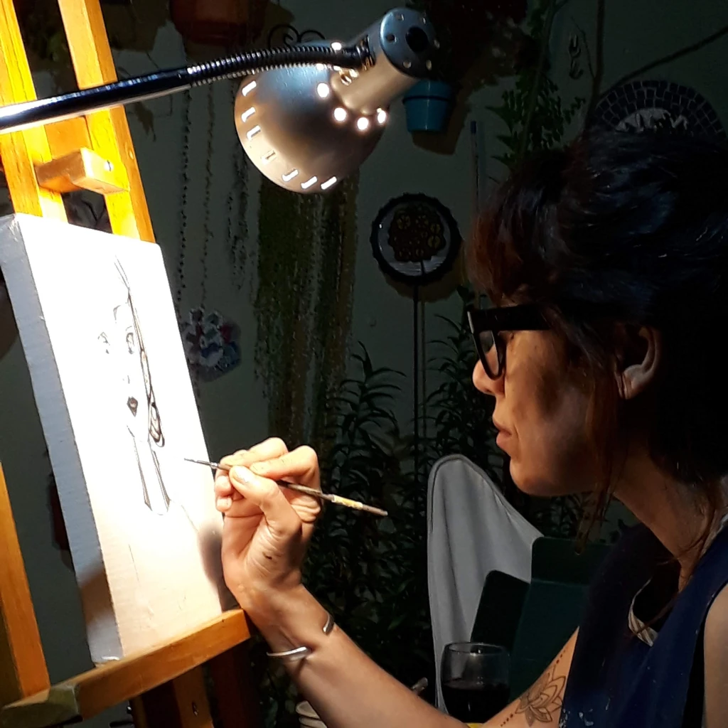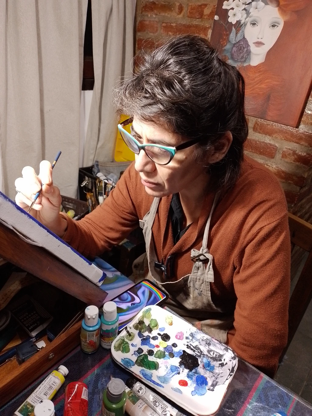 Pintar me permite ser la basurera, la artista, la creadora. Pintar para mí fue crear un mundo donde solo me sumerjo al buceo de los afectos, que son colores, a veces puros, otras veces quebrados que me llevan a no pensar en nada, pero al mismo tiempo saben de mí, más que yo misma.